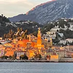 ベッドルーム1室のAppartement Charmant Lumineux Vue Mer Et Jardin Exceptionnel マントンは旧市街Old Town地区から徒歩でたった5分離れたLes Jardins Biovèsへ行きやすいです。 Saint John's's Anglican Churchすぐ近くに位置するこの52m²のアパートには、リラックスしながら海の景色を楽しめるテラスがあります。